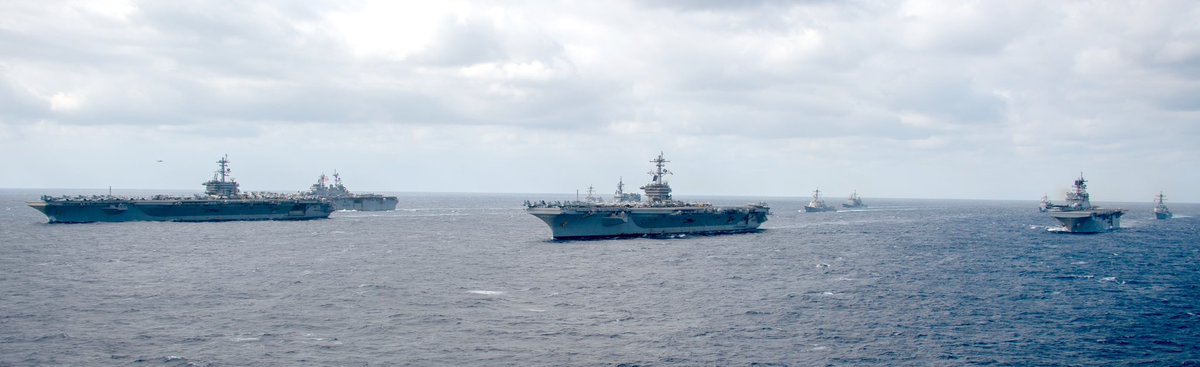 已经在台湾东部会合的美日联合舰队卡尔-文森号(CVN-70)、林肯号(CVN-72)、“日向”号(DDH-181)、埃塞克斯号(LHD-2)、美利坚号(LHA-6)