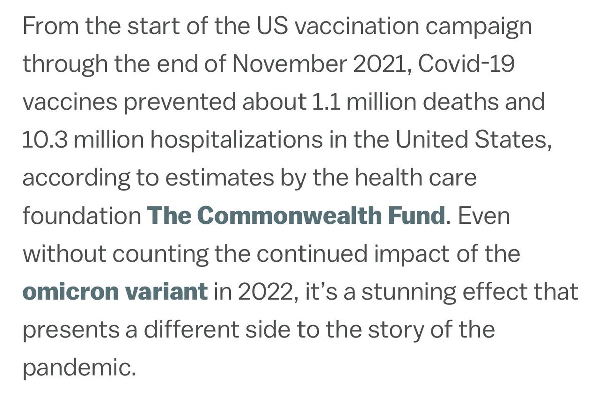 截止去年11月底,疫苗让美国减少了110万新冠死亡和1030万新冠住院。