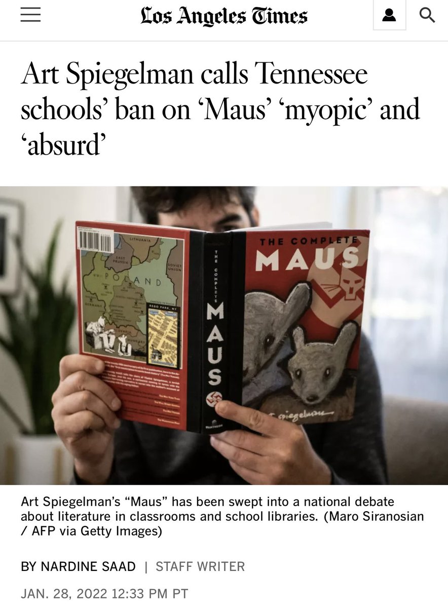 纳粹烧书,共和党禁书:田纳西州教委禁止公立学校学生阅读一本描写奥斯维辛集中营的绘本小说,该书1986年获得普利策奖,一直是美国中学生了解纳粹大屠杀的必读书。