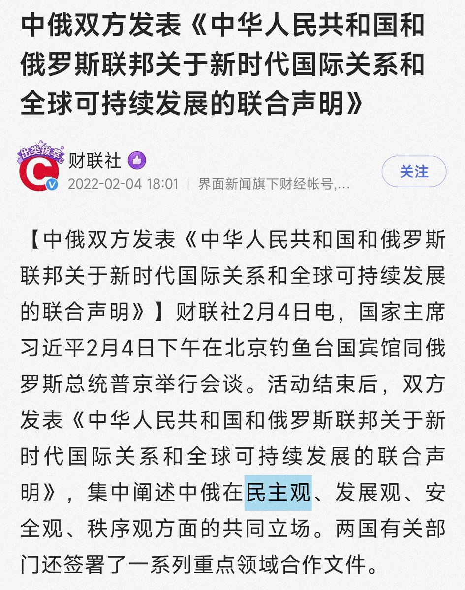 中俄利用开奥运会之机搞不是盟友胜似盟友的合作,推行全过程民主。听说奥运会跟政治无关?