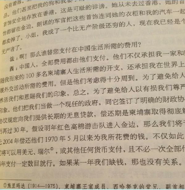 :在接受意大利著名记者法拉奇专访时,西哈努克说:中国人,全部费用都由他们支付。