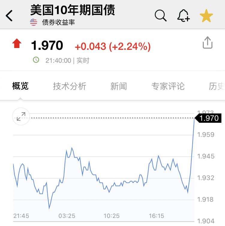 美国通胀数据公布后,美国十年国债收益率飙升,距离2%关口仅一步之遥!中美两国十年国债利差仅剩90个基点!这对中国央行宽松政策构成严重制约,如果美国通胀继续,美联储激进加息,中国将被迫加息!