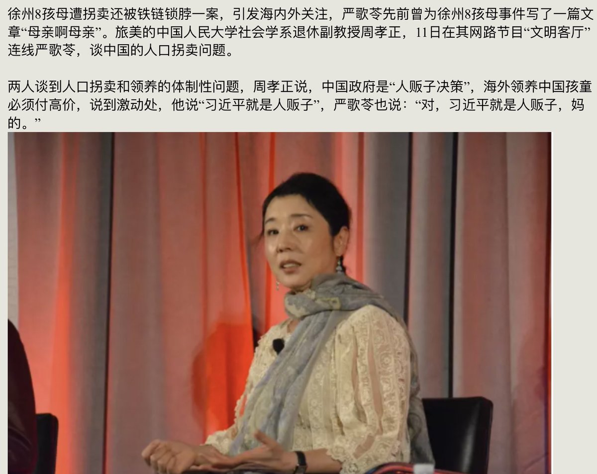 爆粗口骂习近平后 百度已搜不到严歌苓华裔美籍作家严歌苓日前在网路节目谈到人口拐卖时,附和主持人所说的“习近平就是人贩子”,还爆粗口。今天新浪微博已无法搜寻“严歌苓”网友:猪颜大怒,下令彻查,因其老外,网上封禁!