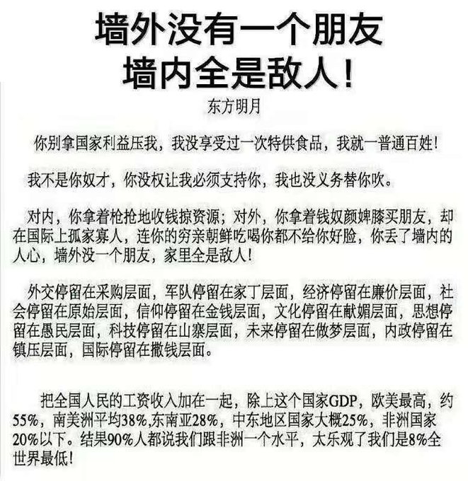 路过的五毛粉红们:共产党“共”的是谁的产?!是每一个中国人的,是你的财产,你的妻女!你至今仍然认为共产党代表你,代表中国吗?!违法翻墙出来看完黄网好好想想,人不是牲畜,走完肾得走点儿心。。。。。