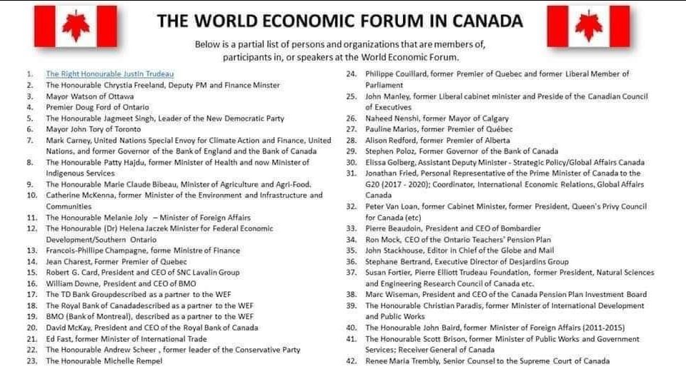 WEF世界经济论坛渗透加拿大不完全名单。深度沼泽!