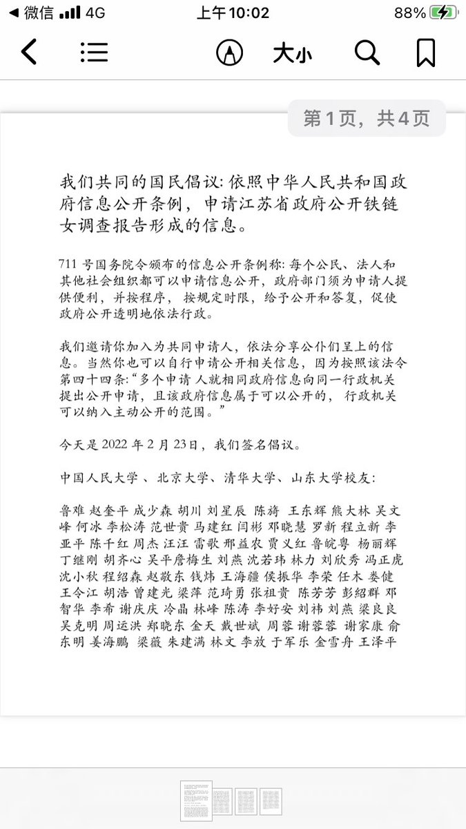 中国人民大学、北京大学、清华大学、山东大学校友签名倡议:依照中华人民共和国政府信息公开条例,申请江苏省政府公开铁链女调查报告形成的信息