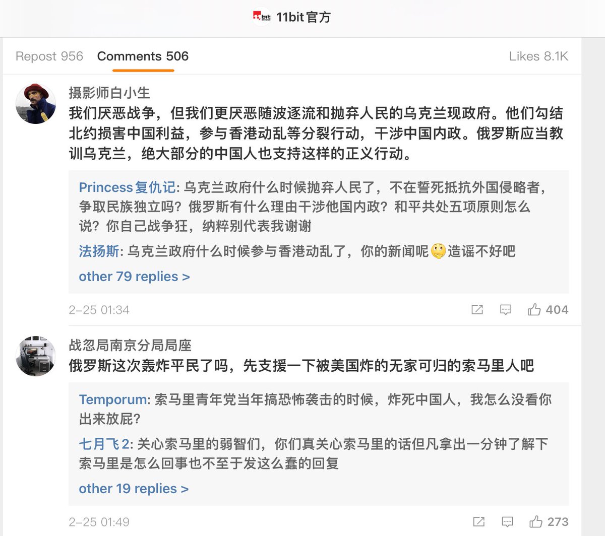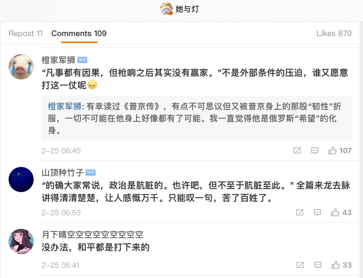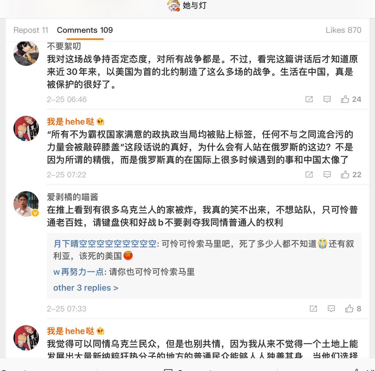 不少俄国人在反战,倒是墙国人在支持战争,普京在简中世界的粉丝比他在国内多多了。