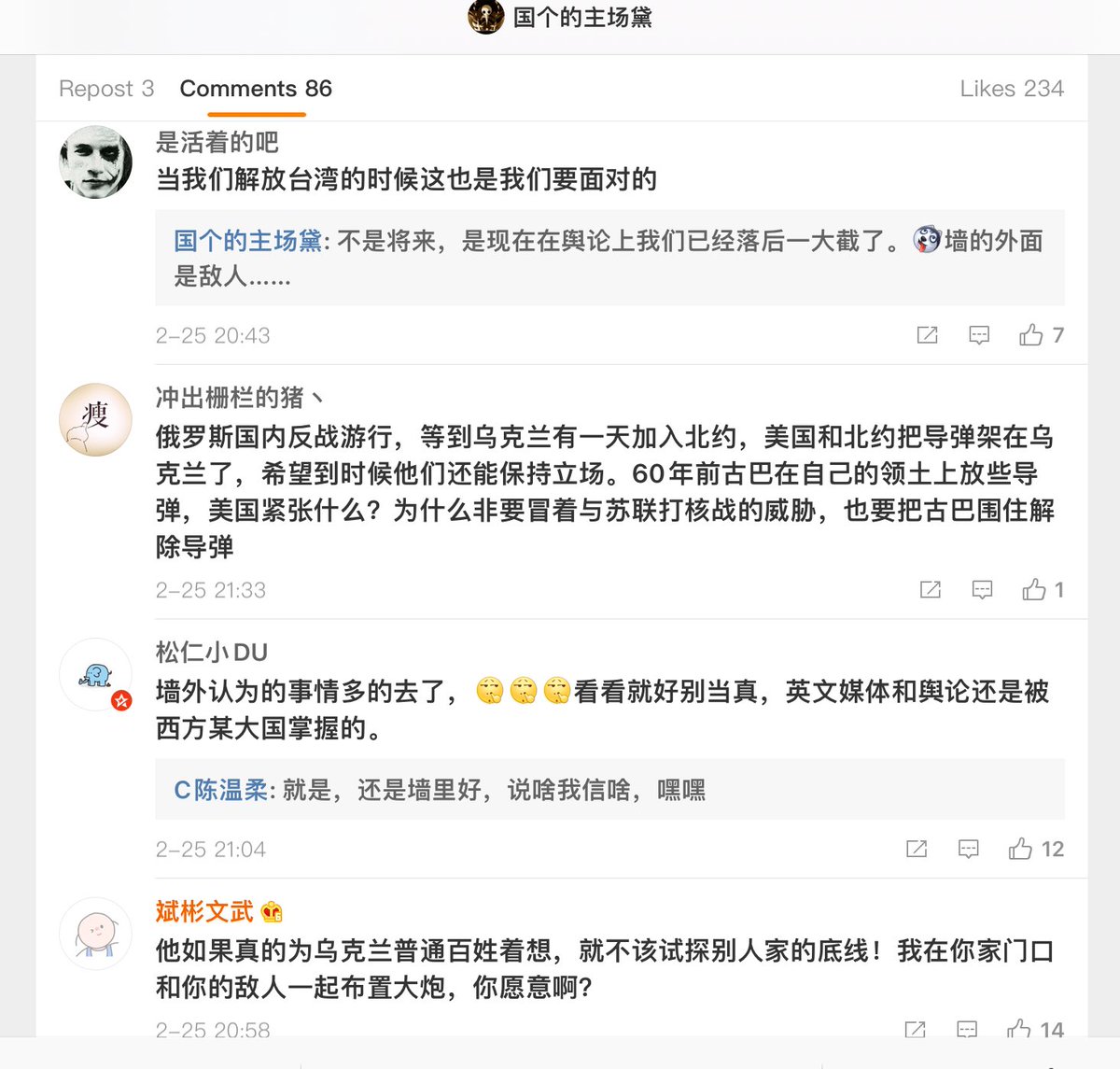 看到墙外的世界完全跟墙内官媒说的背道而驰,都没有触动一点为什么是这样,还要感谢有墙,没治了。