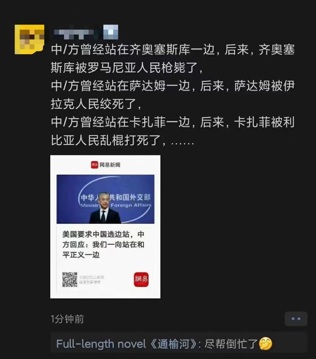 中方现在站在普金一边,将来,普金一定被俄罗斯人民绞杀。