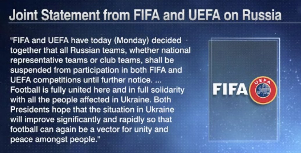 俄罗斯被踢出 2022 世界杯了, 连欧洲赛也没得玩!#Ukraine