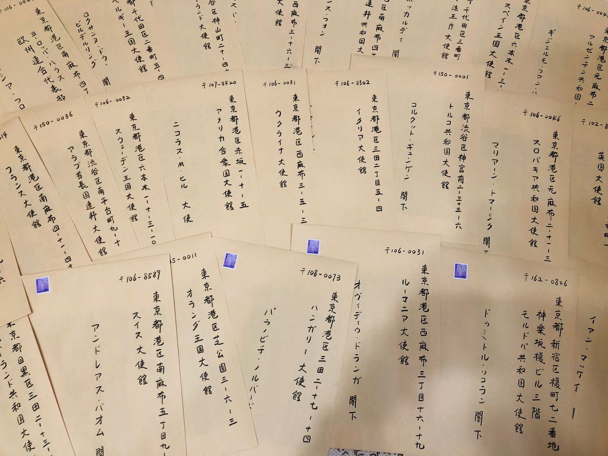日本银河系30封,法制基金乌克兰人道救援信息.,向日本所有的大使馆寄出。