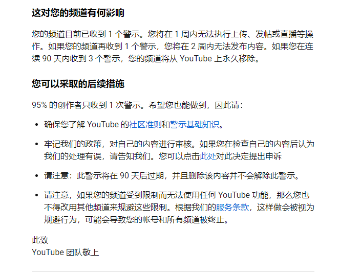 好不容易滑过了上一轮的整体3次警告。还没缓过气来,新一轮的警告又来了。不要说90天,我猜测可能3天就新的三张就来了,本频道,真可能死定了。