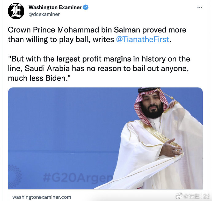 “沙特王储穆罕默德·本·萨勒曼:“在面临历史上最高利润率的情况下,沙特阿拉伯没有理由救助任何人,更不用说拜登了。”” 拜登带着全家包括harris全家来磕头考不考虑一下?