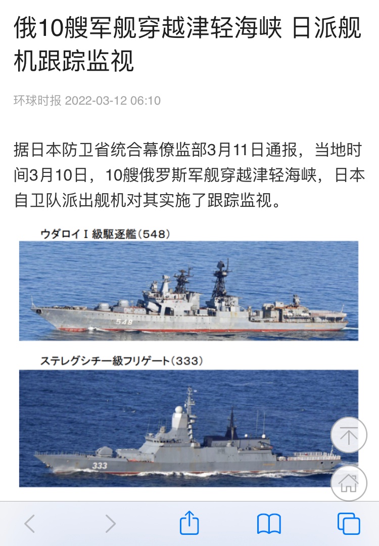 俄10艘军舰组成舰队穿越津轻海峡进入日本海,日本海内将是下一个热点区域!俄罗斯敢在日本海内搞事吗?