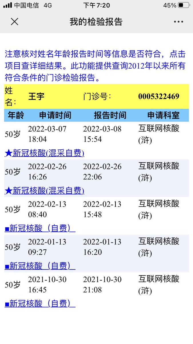 今天上午11点,四人一起做的核酸检测,刚刚其他三人的核酸报告都出来了,只有我一人的报告没有出来。看来我上次在12345电话投诉他们之后,不但没有任何结果,现在反而再次报复我!苏州究竟要干什么?