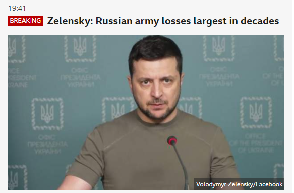 泽连斯基:俄罗斯军队遭受了几十年来最大的损失3月12日,乌克兰总统泽连斯基刚刚在社交媒体上发布了一段新的视频讲话。泽连斯基说,俄罗斯军队遭受了几十年来最