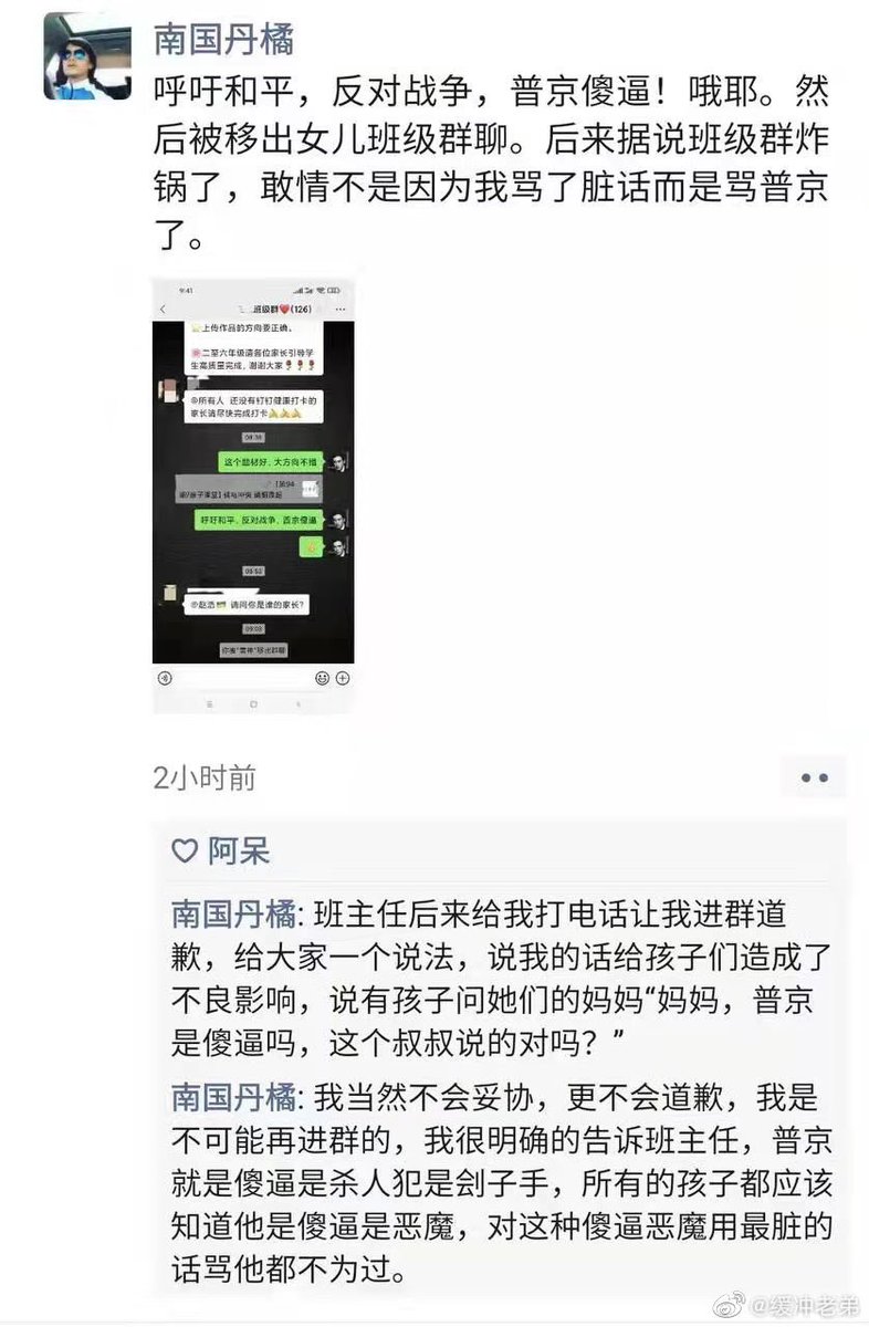 某家长在女儿班级群聊里骂了普京被踢出群,还被要求道歉。