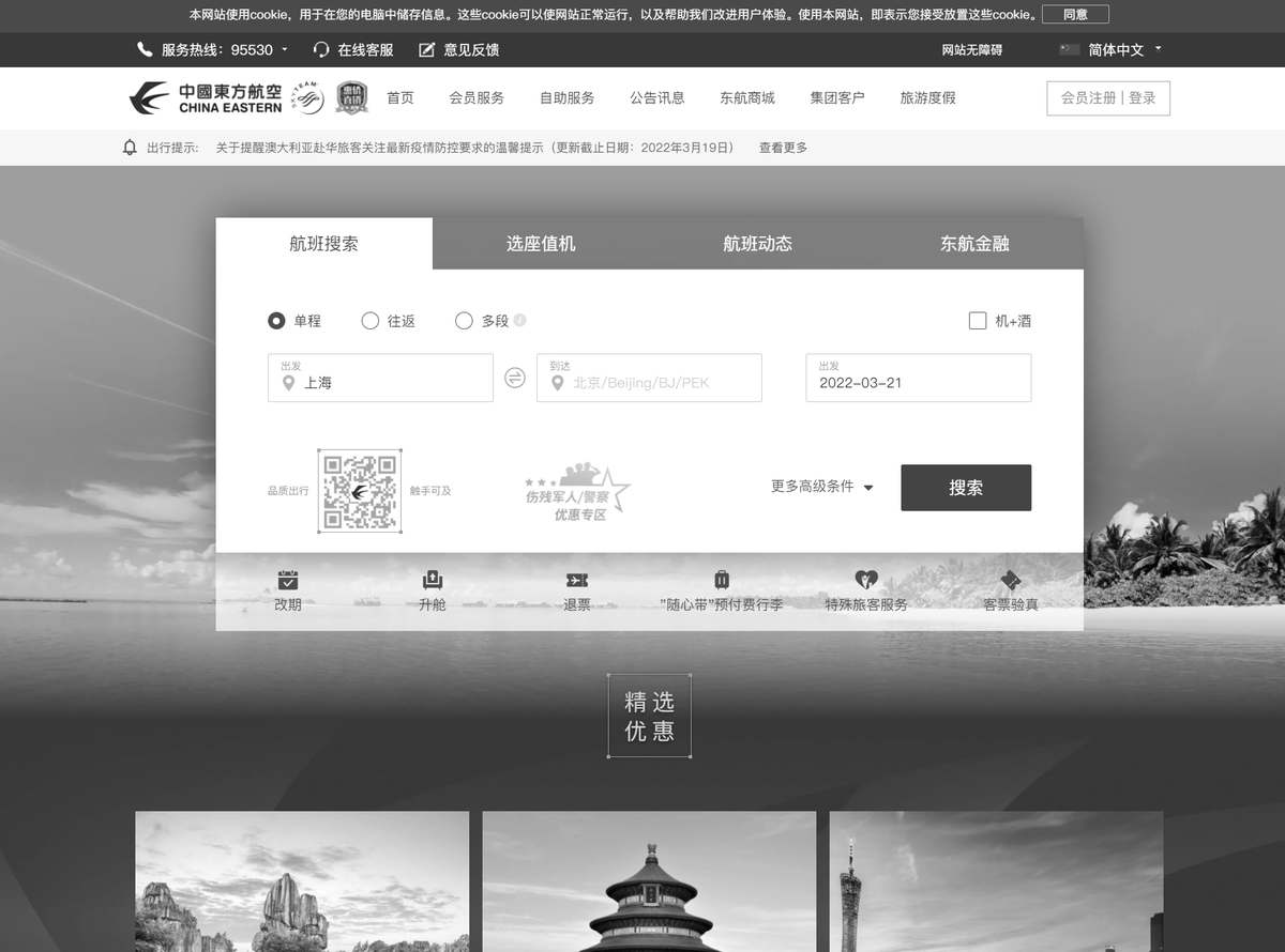 东方航空官网首页变黑白色了。#东航 #东方航空
