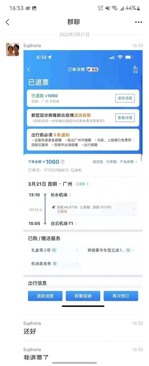 东航失事飞机载有132人,社交媒体爆料有1人退票。#东航 #东方航空