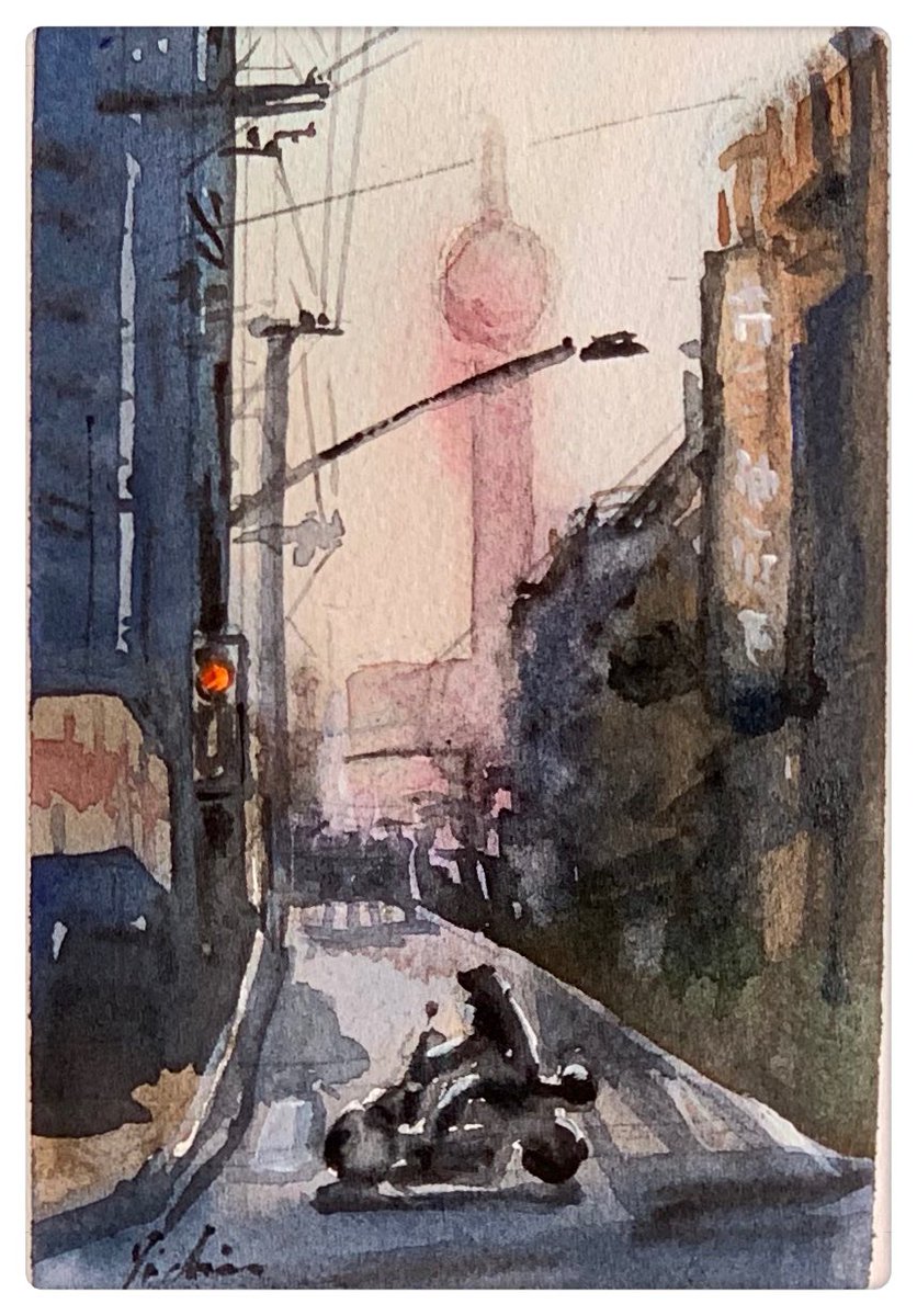 2年前我画图二,用了点暖色希望还是有的,上海福州路。图一今天的,还是福州路,气氛压抑了。