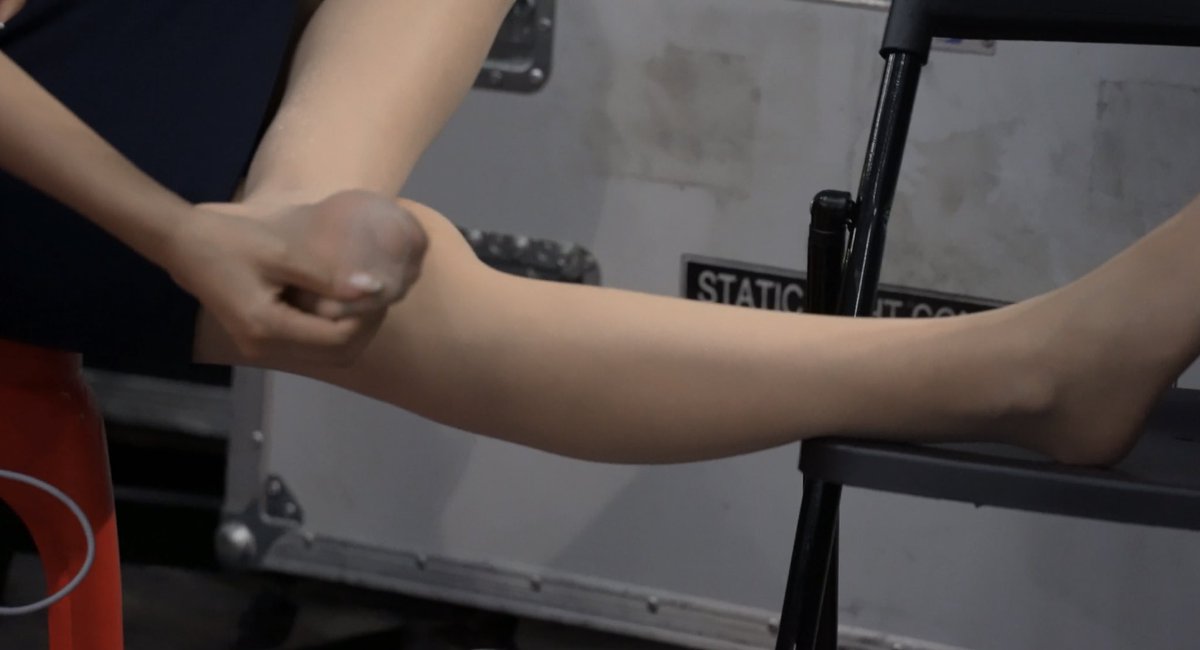 车展工作人员脱鞋晾脚