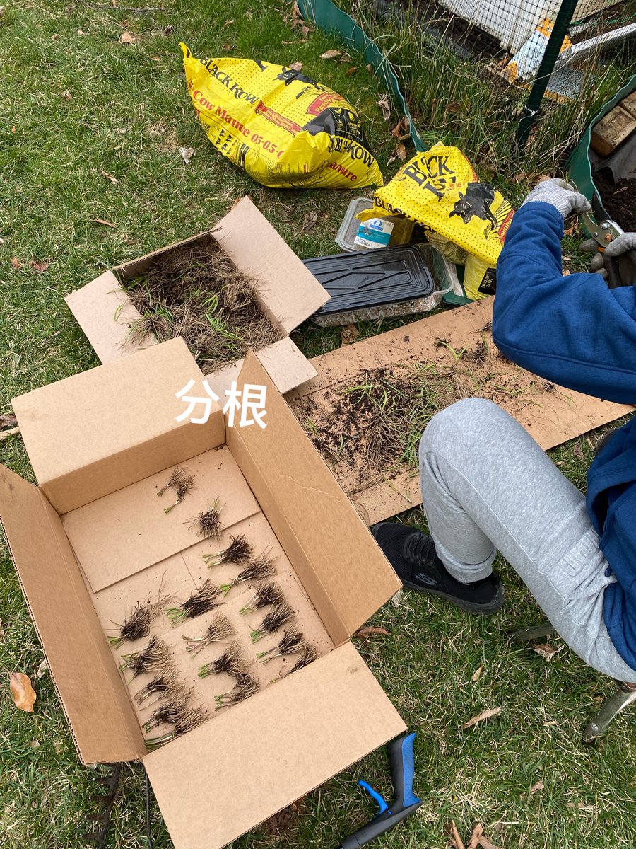 今天把韭 菜挖出来✂️分根、翻整了土地、添肥。重新种下,一共108撮儿,每一撮儿里有大约6-8颗,真是不少累坏了老腰,坐等今年的丰收