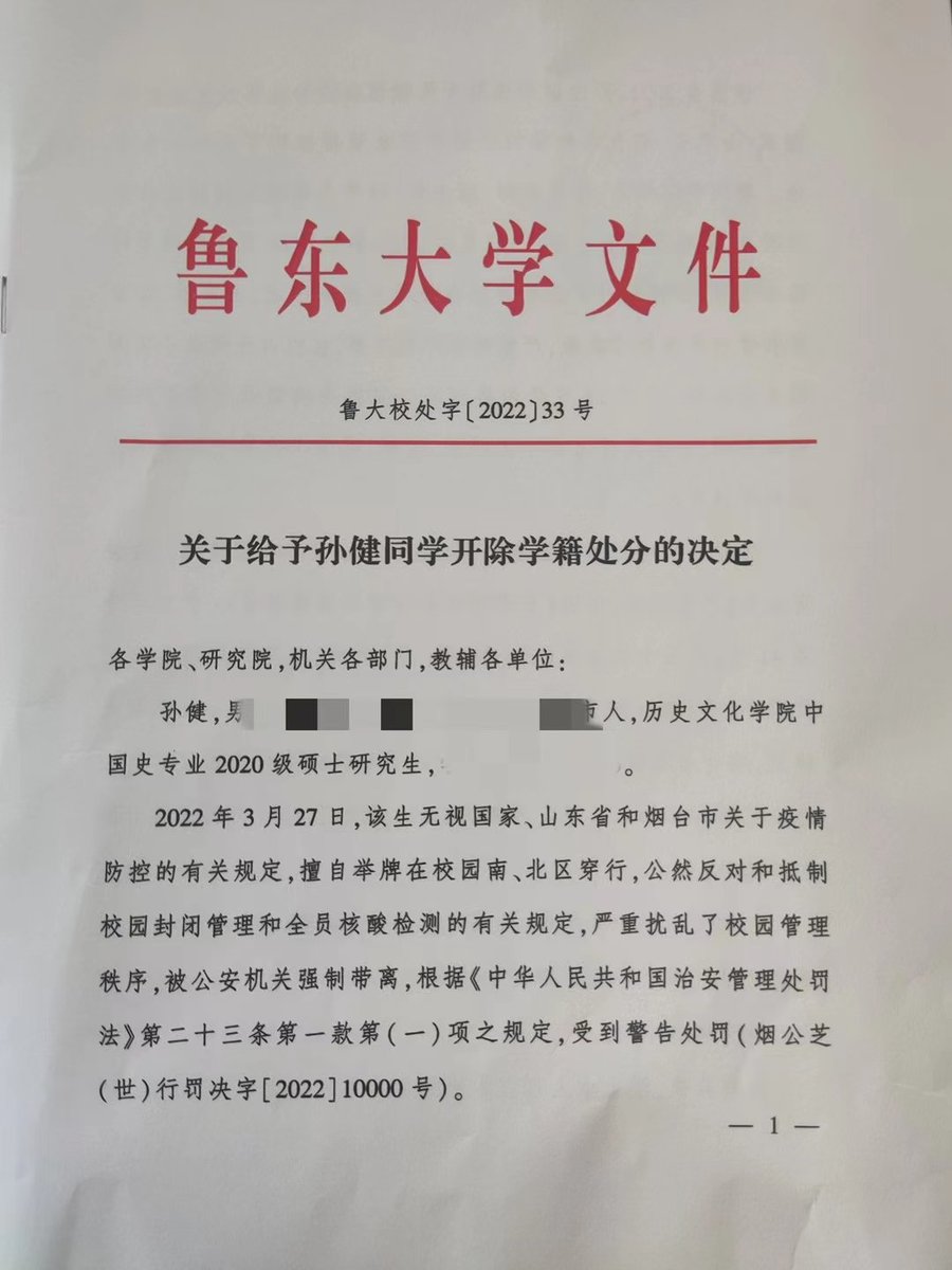 #前线新闻FRONTLINE NEWS 鲁东大学孙健因举牌抗议封校被开除。