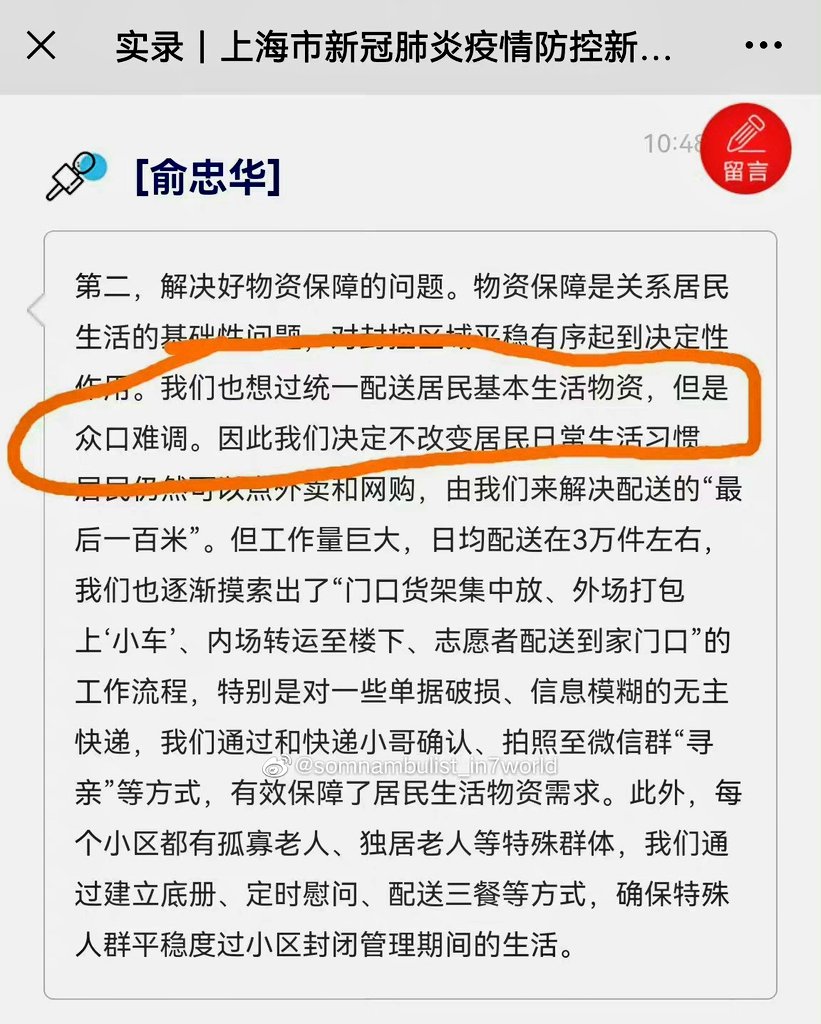 上海宝山镇副镇长俞忠华被曝倒卖捐赠物资。他在疫情发布会上表态称不会为民众统一配送物资,需自行上网购买。各地免费捐来的物资,他打包成两百元一份的蔬菜包卖给民众。借防控发民难财,官员们贪婪无耻到了如此地步。