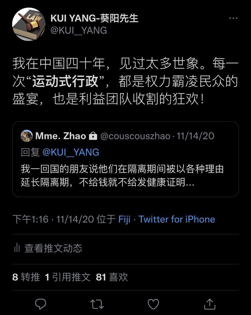 我2020年在斐济时说过的一段话。而此刻“运动式行政”正在中国上海大行其道,人们苦不堪言。重点是,这才只是一个开局。更深重的苦难还在路上,并且没有任何可以逆转它的迹象。