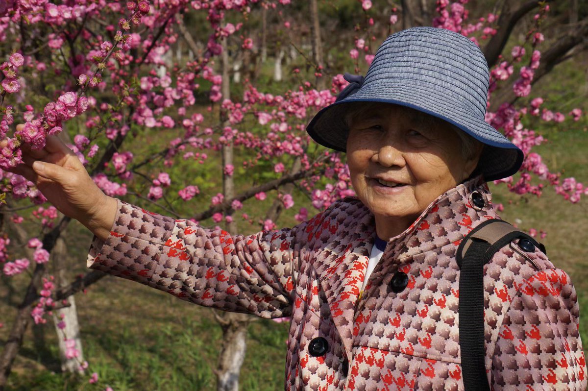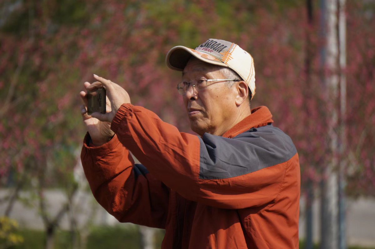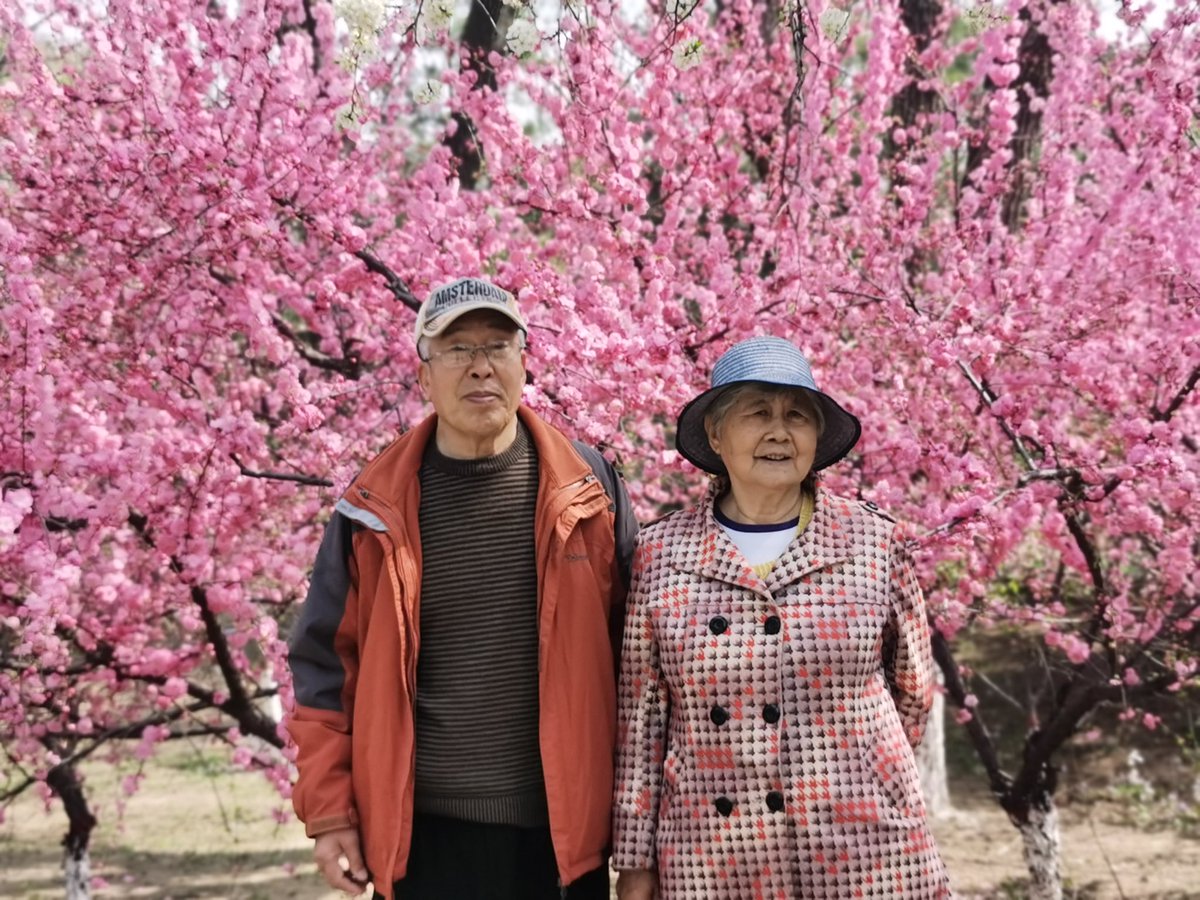 解封后,老爸老妈去看花花。看着老爸有点驼背了,