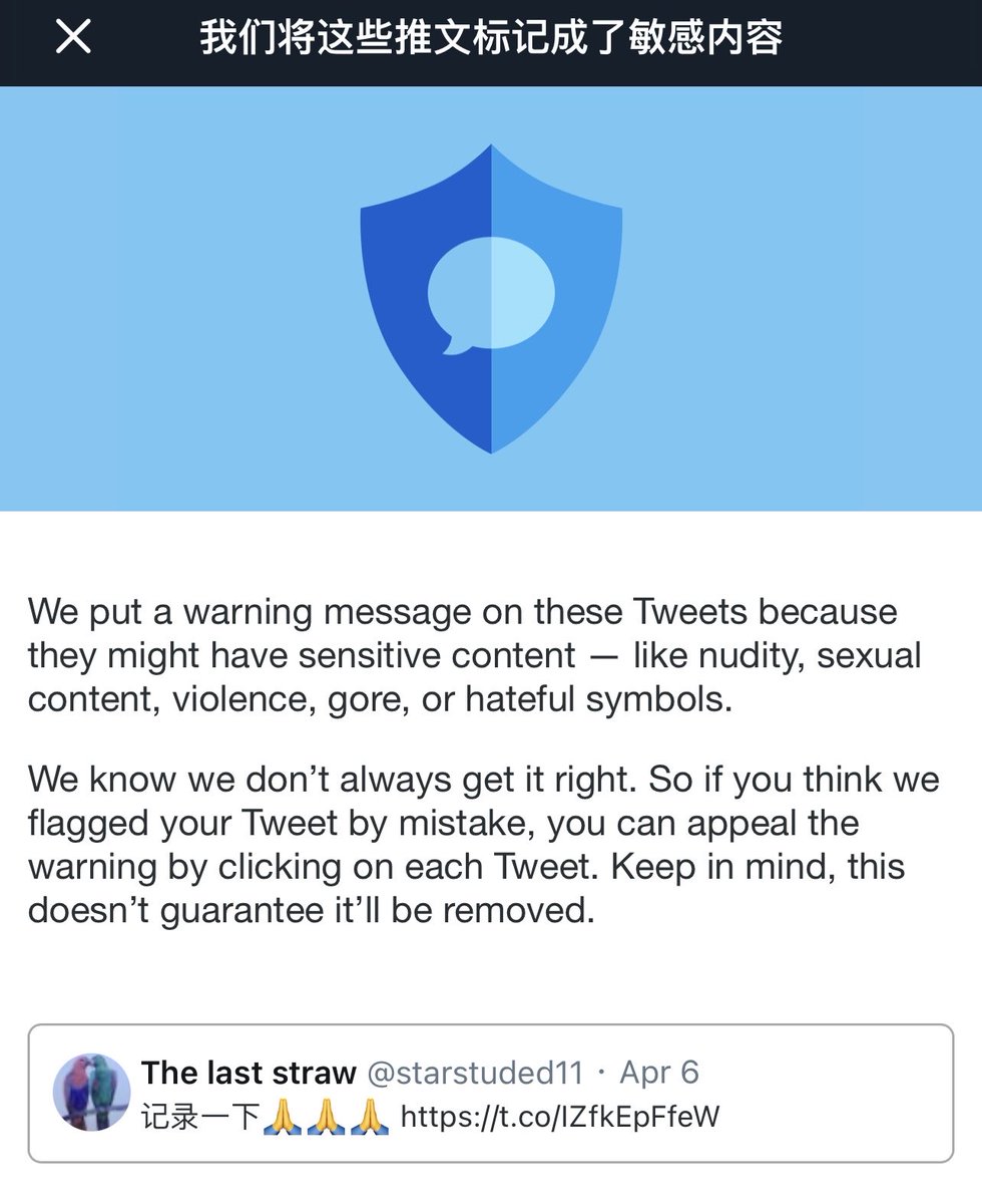 这个来得挺应景儿,有点儿配合今儿这日子!五年了,推特依旧狗改不了吃!言论自由还有很长的路要走!其实我都忘了发的是什么东西了,它们连显示的勇气都没有,也是没谁了