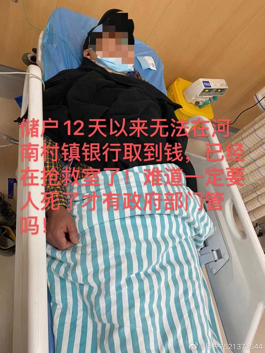 储户12 天以来无法在河南村镇银行取到钱,心律失常,生命垂危!银行没钱了!河南这些小银行亏空很严重啊!