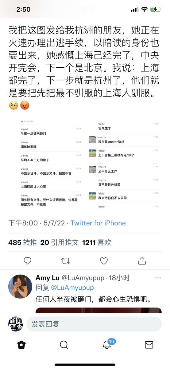 上海某单位法务总监刘中明,房子价值4000-6000万,半夜一点钟被一群警察砸门,说他是密接要抓人。警察不出示证件,不出示文件,说是秘密,报警也没用。最终一家人被10多个白卫兵强行抓走!中产、金领们在瑟瑟发抖啊!