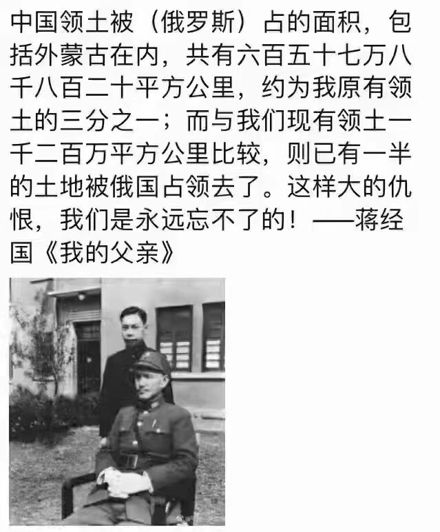 没有核实蒋经国文中是否准确,如果有学者确认那是准确的信息的话,也就是说:即使当时还有1200万平方公里,现在960万,后面又给俄爹还有200多万!这些卖国贼!