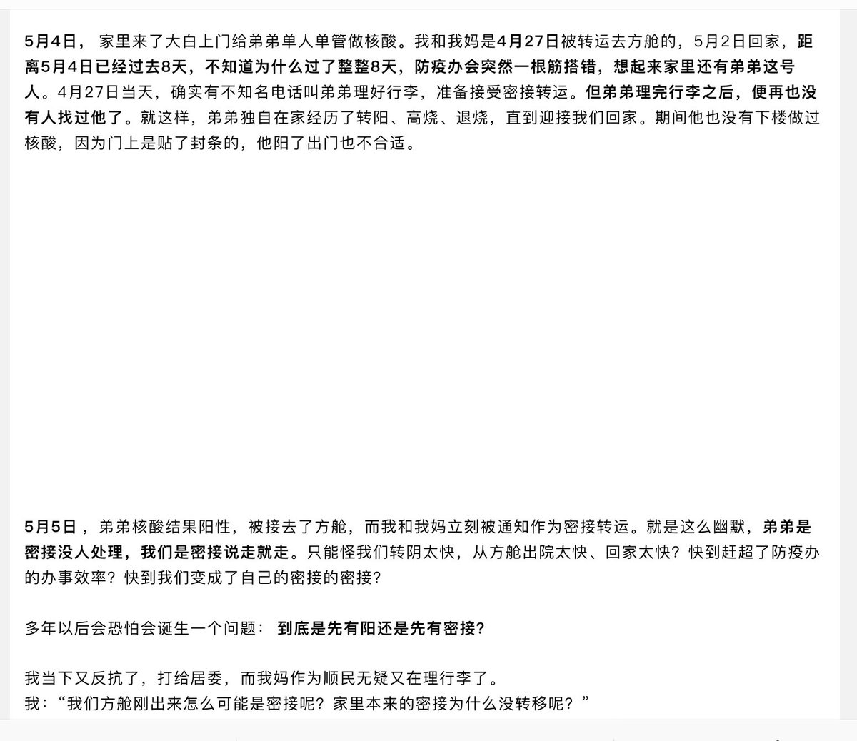 从方舱回家后,因为成了自己密接的密接,再度被拉到毛胚房隔离。作者还有些反抗的勇气,而其他人都默默顺从了,反而把她当成了害群之马。1/2