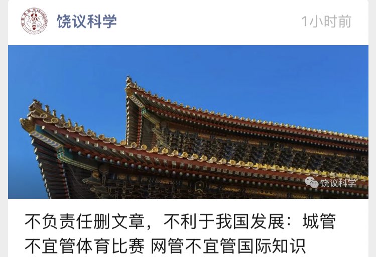 饶毅发了这么一篇文章,说“不负责任删文章,不利于我国发展”,居然也被删了。现在凡是说真话,都是这个待遇,不管你是大V还是科学家。疯狂地删帖,难道就可以让整个国家鸦雀无声?鸦雀无声就太平了?这不科学吧!