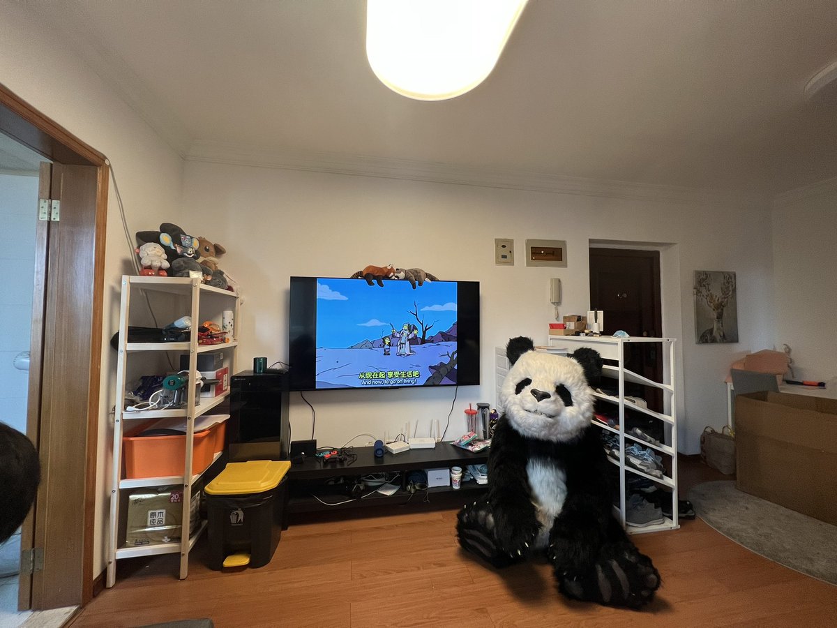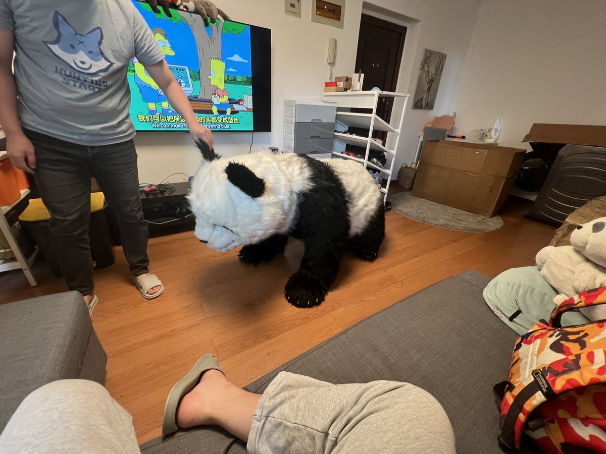没有人能拒绝自己家有一只可爱熊猫吧!哈哈,辛苦小伙伴在里面扮演了,一个小时紧身衣全湿了……
