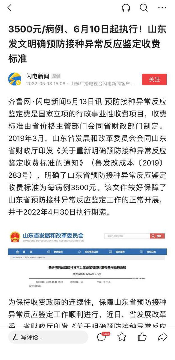 这是说打疫苗出问题了先交3500的鉴定费?然后大概率得到个“偶合”的结果