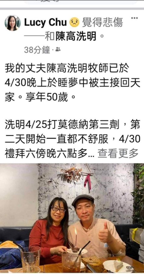 又是第三针后很快出事。早就有“第三针加料”的阴谋论,现在有些不相信的人正在用他们的生命在验证