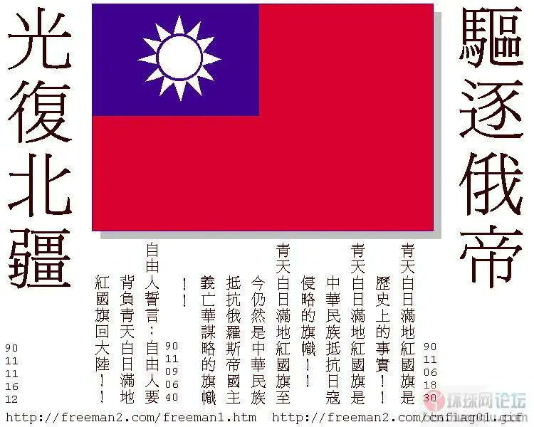 青天白日满地红国旗是历史上的事实!青天白日满地红国旗是中华民族抵抗日寇侵略的旗帜!青天白日满地红国旗至今仍然是中华民族抵抗俄罗斯帝国主义亡华谋略的旗帜!驱逐俄帝共匪,光复民主中华!