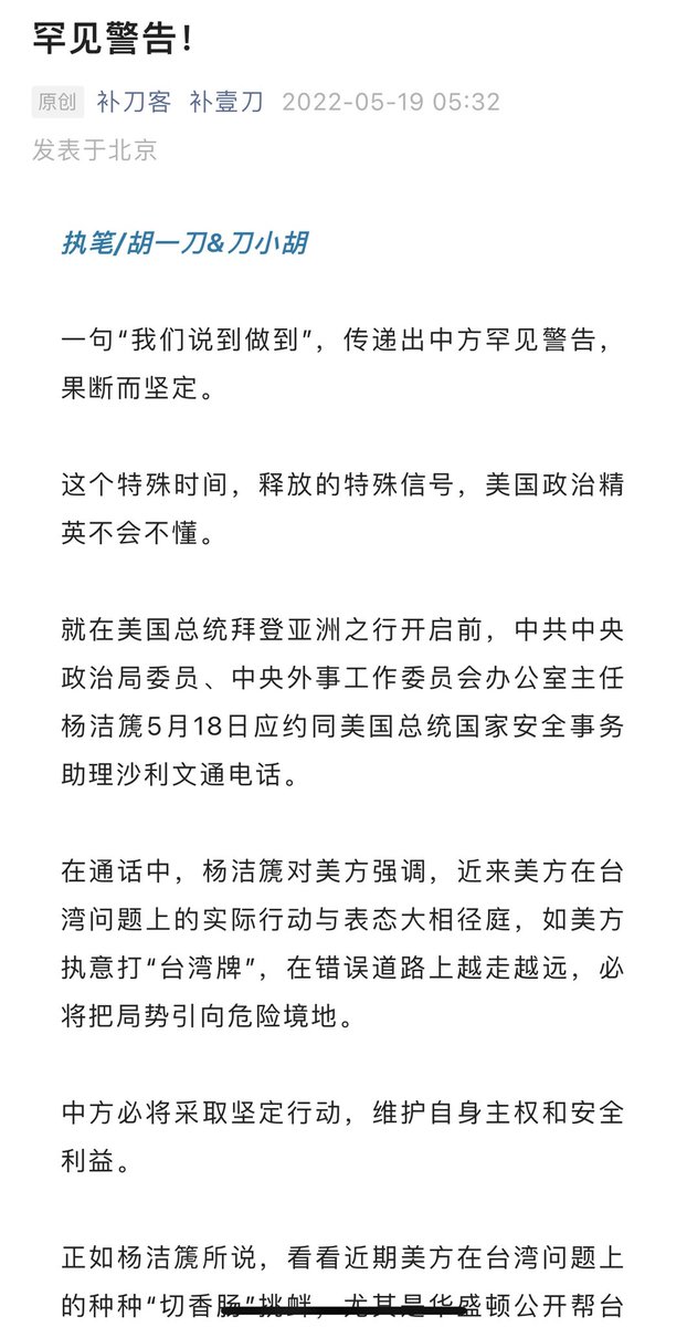 中国警告美国也能叫“罕见”?以前中国对美国发出的严重警告还会自己统计次数,有好几百次,国际上称为“中国式最后警告”,意思是没人会当真的警告。