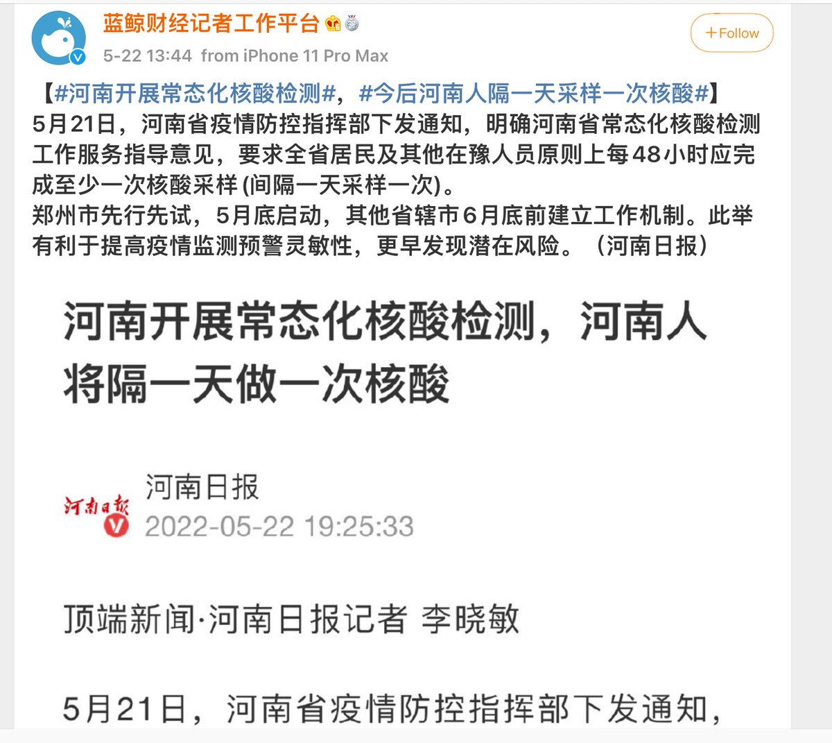 今后河南人常规隔天一次核酸