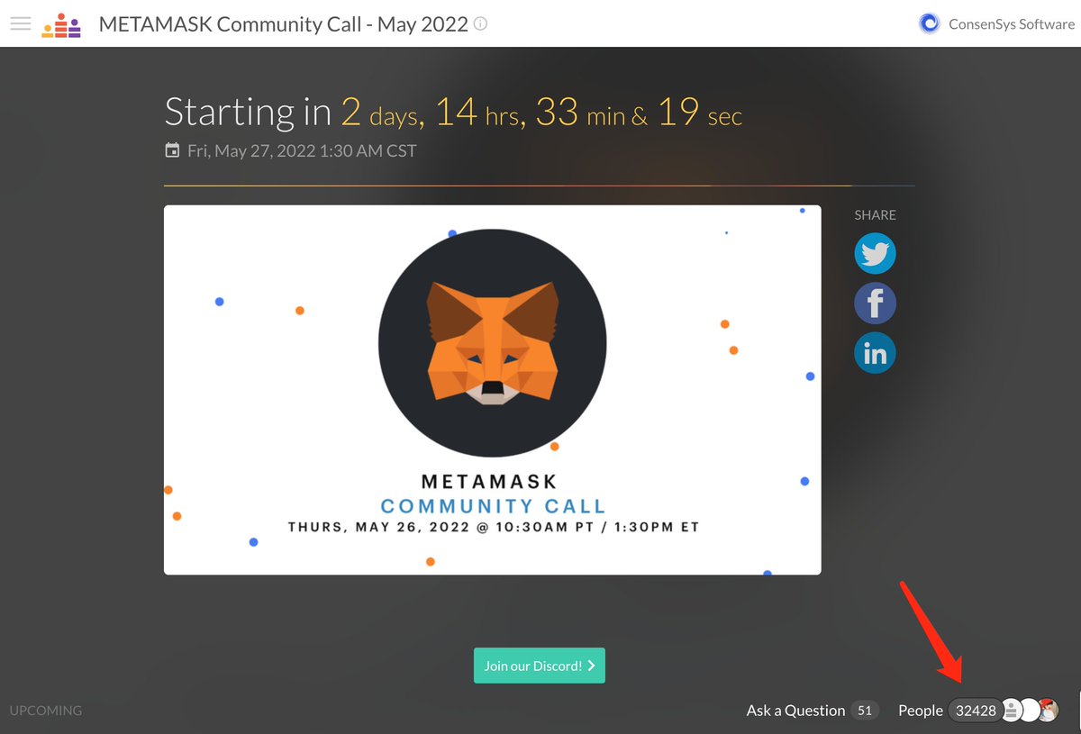 小狐狸最新 Community Call 的时间:北京时间5月27日1:30AM上一期会议的 POAP 炒到了几百U,所以这一期大家热情巨高,现在登记的就已经三万多人……