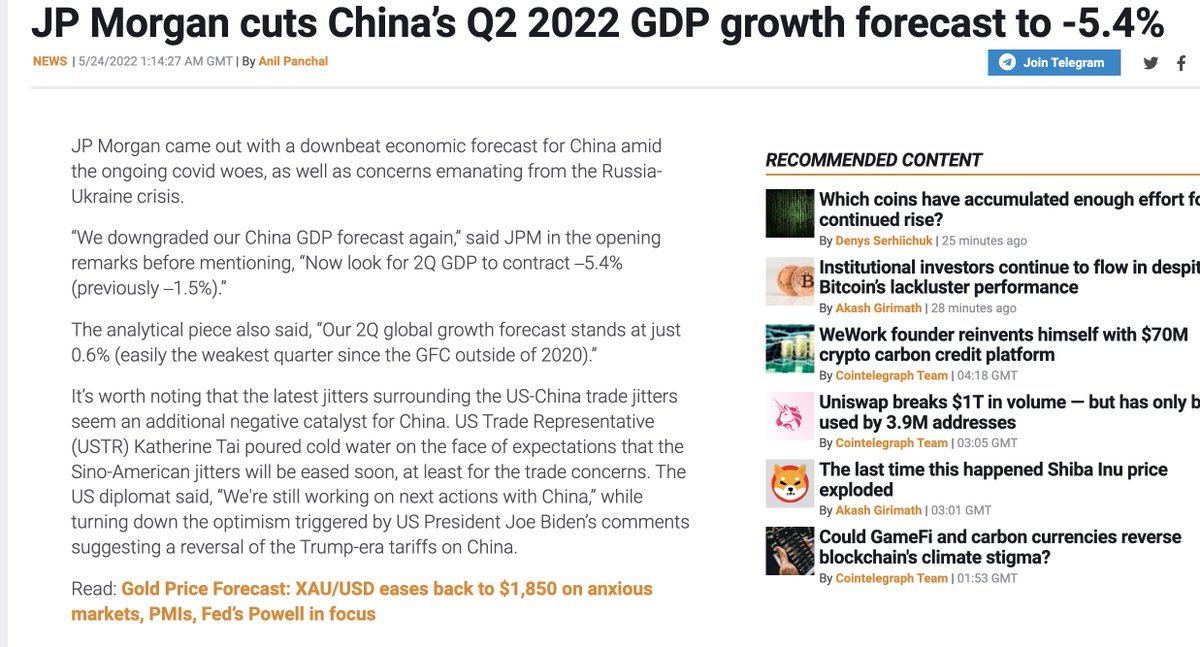 JP Morgan:中国2022 Q2的GDP预计下跌5.4%。2022年Q2了,中国是目前全世界唯一一个被Omicron搞垮的经济体。真他妈绝绝子