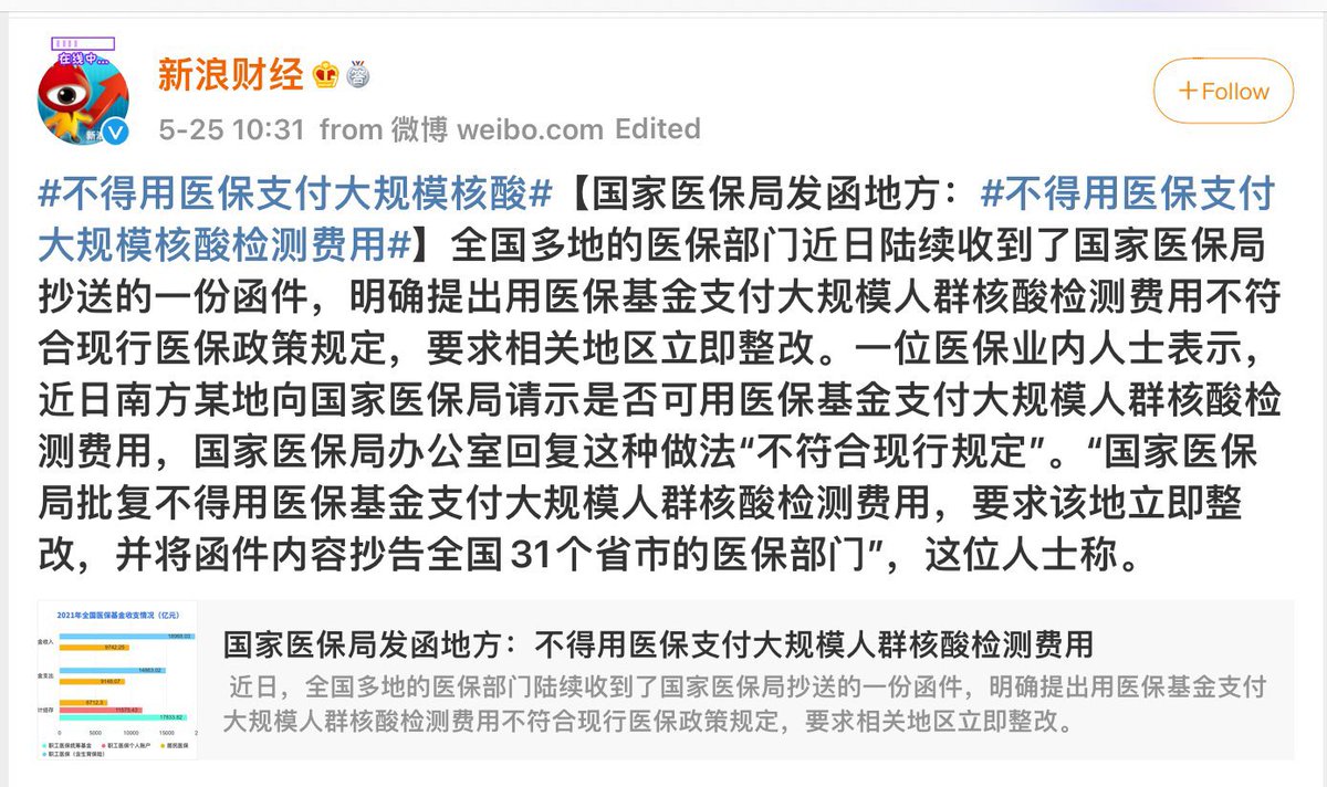 意思是医保已经被核酸检测掏空,以后都要自费了?