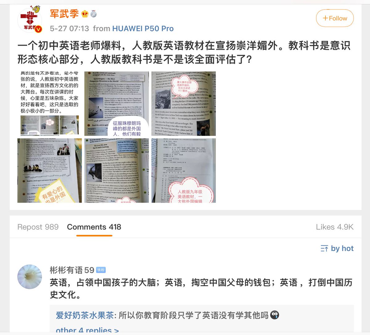 教材的事在继续发酵,各路妖怪都在惊呼有问题内部有敌人意识形态阵地被占领了