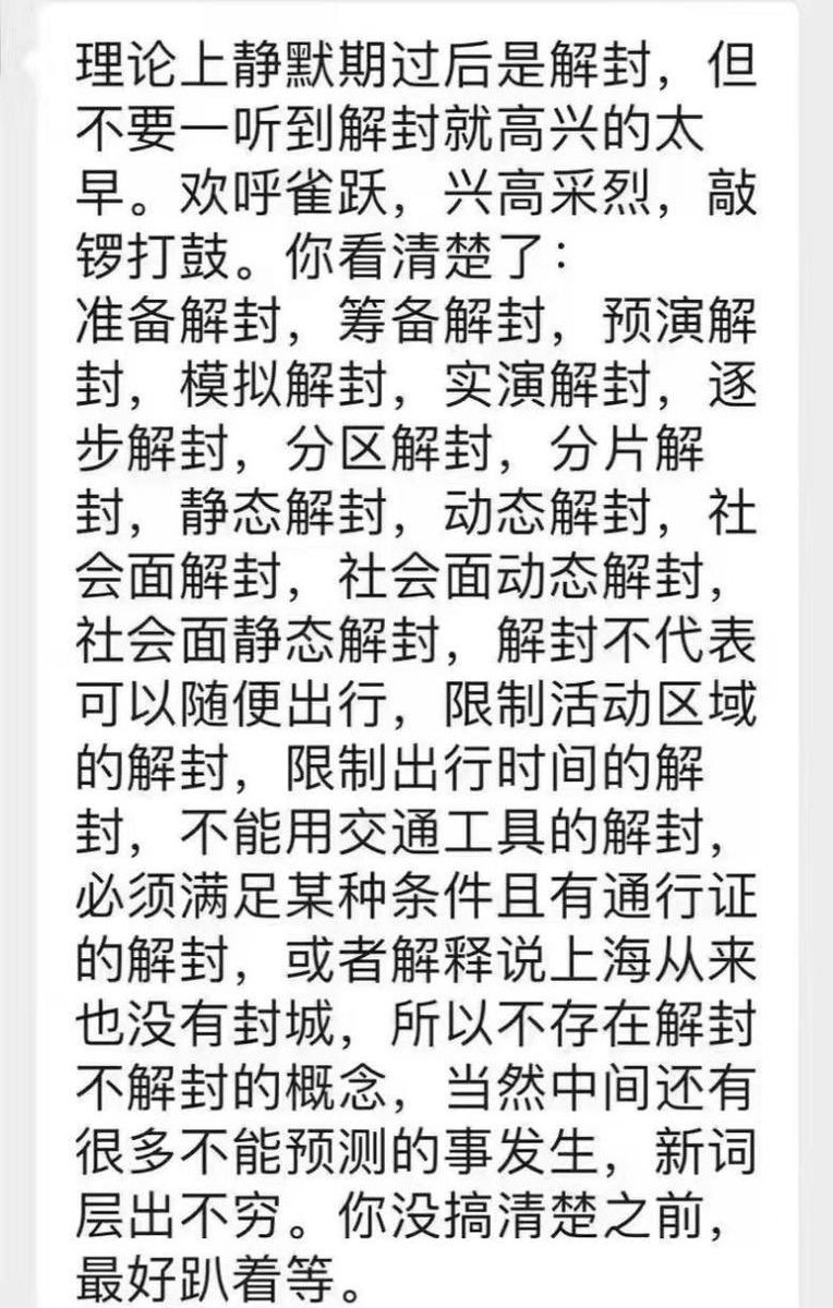 在你没有疯之前,一定会让你对封和解封产生根本性的怀疑,对文字的含义产生动摇,让你不知道自己智力出现了问题,还是中文已经经过根本性的改变,你已经不适应了,最后只能选择:封还是疯!