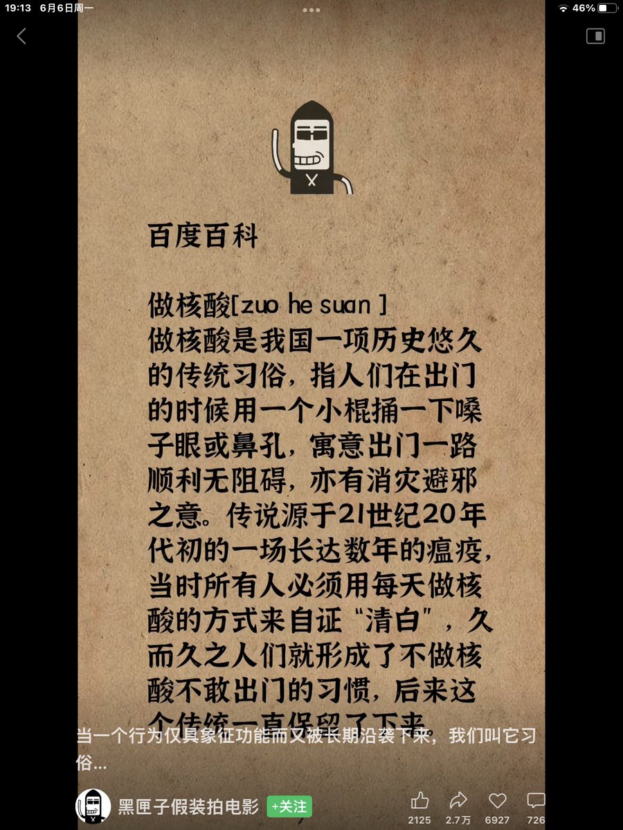 未来的小学生将读到这样的内容……转【百度百科:做核酸】