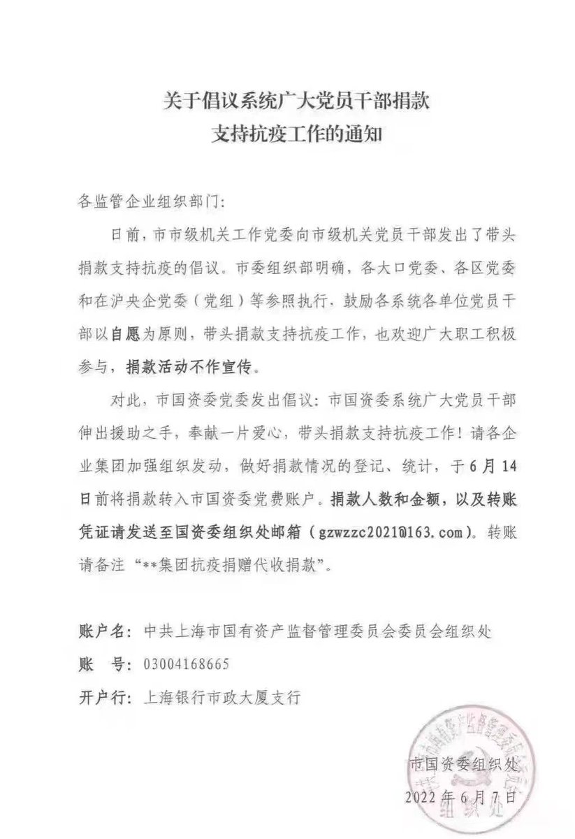 钱糟蹋完了?转【上海市国资委:关于倡议系统广大党员干部捐款支持抗疫工作的通知】