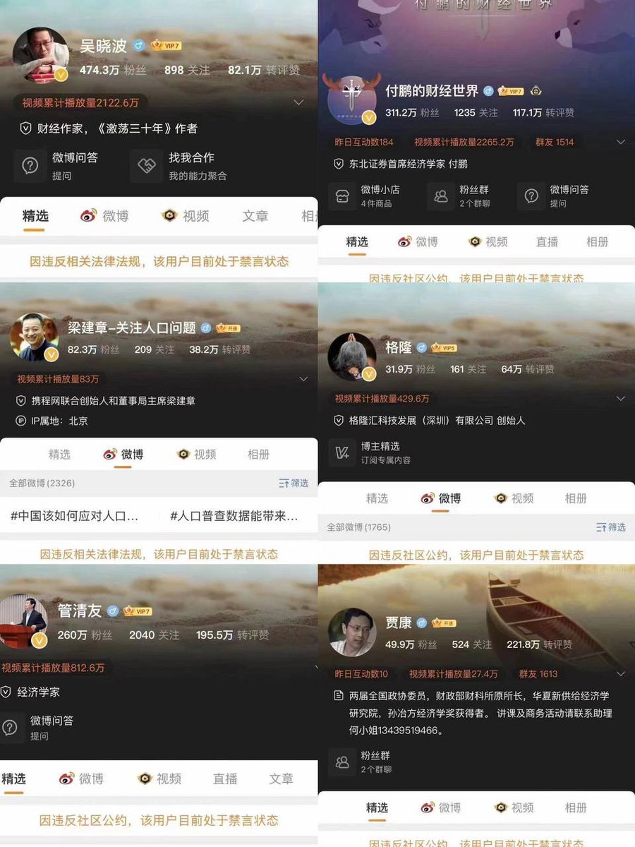 微博禁言了一批经济学家和经济评论家的账号,经济发展形势必须一片大好。